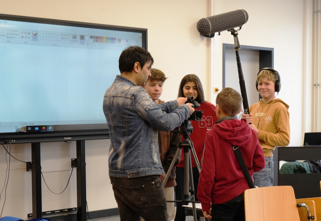 Ali, Awan, Phil und Farum sind mit Kamera und Ton sofort zur Stelle. Wesam und Zakaria schießen Bilder. Mariam, Sham, Marim, Ahlan und das Duo Leen und Leen entspannen sich inzwischen, ihr Interview ist gerade gut gelaufen – das ist im Film deutlich sichtbar: