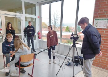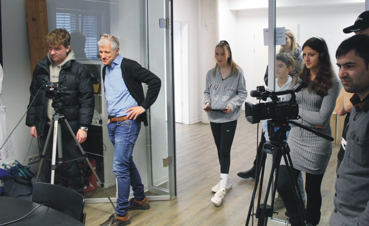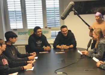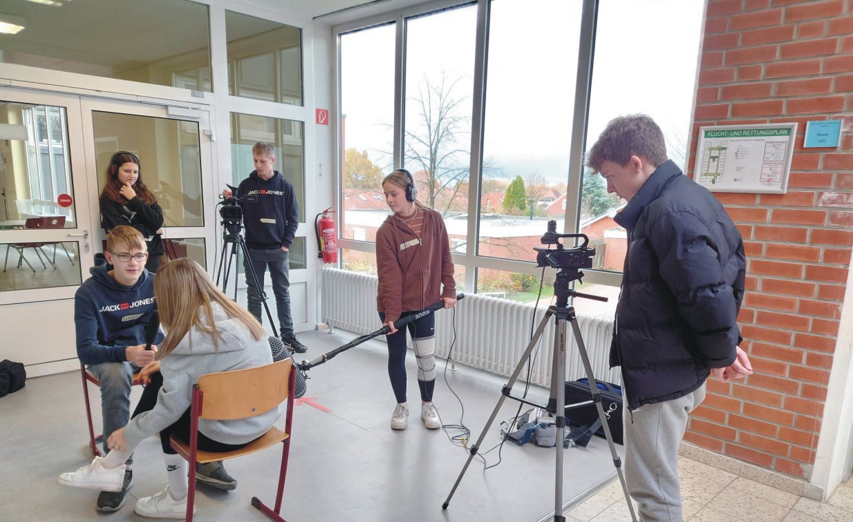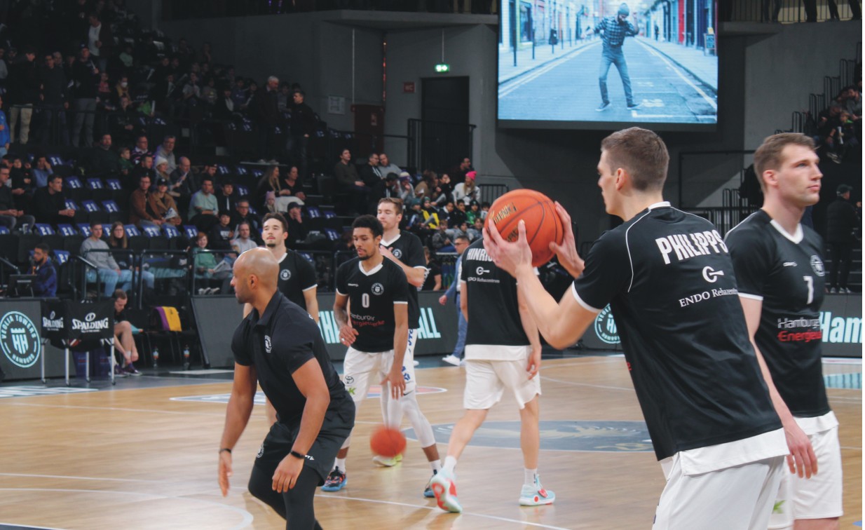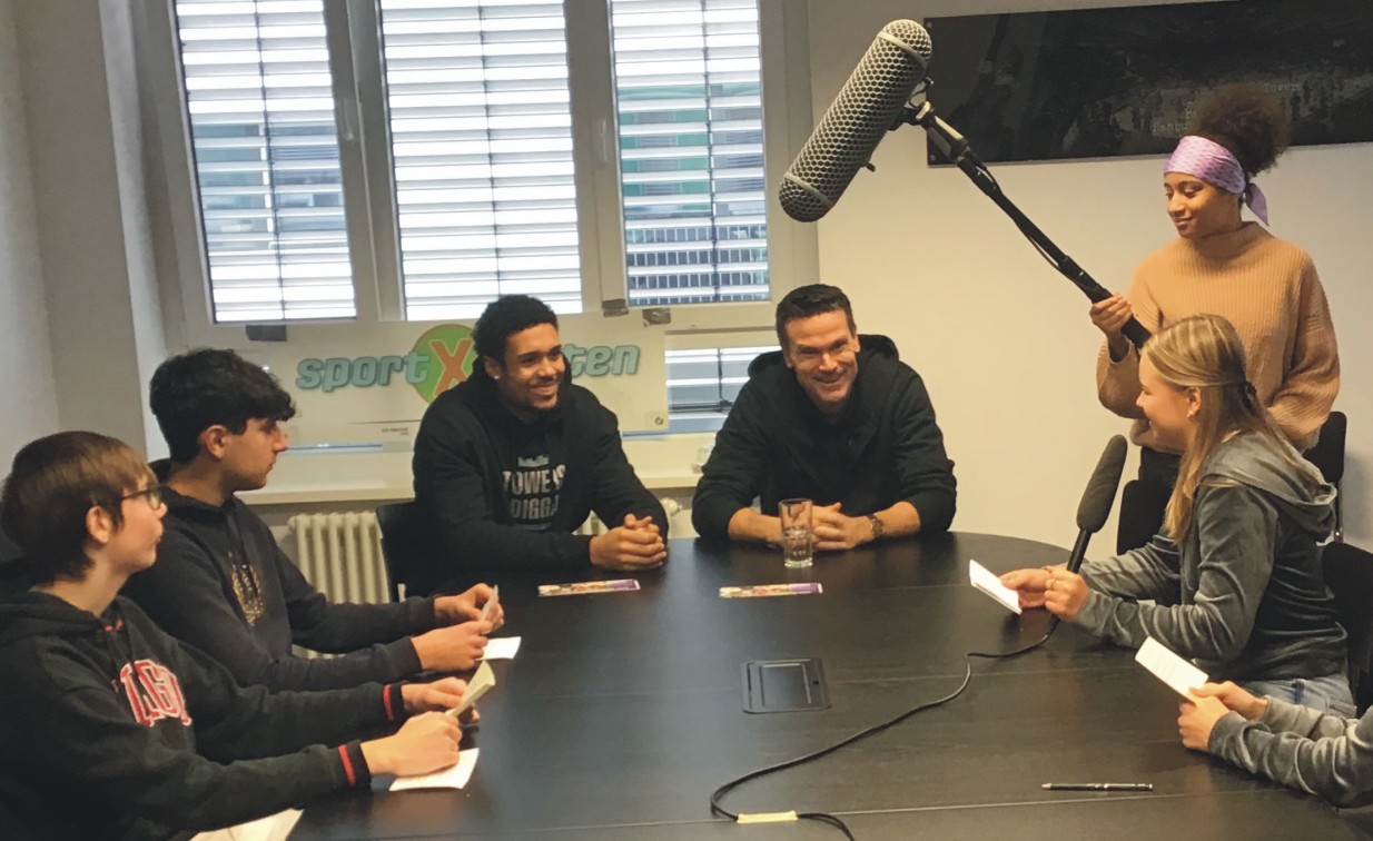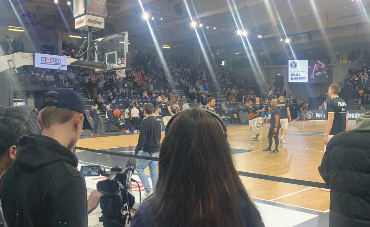 Das Basketball-Bundesliga Team der Veolia Towers Hamburg spielt erstmalig im EuroCup und verbreitet in ihrer Halle auf der Elbinsel Wilhelmsburg fantastische Stimmung. Davon durften sich die SportXperten der Erich-Kästner- Realschule Tostedt persönlich überzeugen. Damit ihr Filmbeitrag so rund wird wie das Spielgerät, hatten sie am Vortag bei der offiziellen Presserunde zum BBL Heimspiel gegen Chemnitz die Gelegenheit, den damaligen Headcoach Raoul Korner und den U 20- Nationalspieler Len Schoormann exklusiv vor das Mikrofon zu bekommen. Dabei hatten Anastasia und Svea für einen guten Ton gesorgt. Die Foto- und Videobilder von Amalia und Lennart sowie Florian und Jonah sind auch auf engstem Raum gelungen. Das Team vor der Kamera Ida, Evelina, Kevin , Serkan sowie Naima und Nick hatte sich inhaltlich gut vorbereitet, das ist dem Film-Beitrag anzumerken.